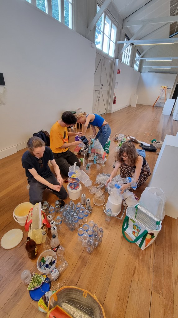 After a week or two of conceptualising, the group came up with this sort of ‘Journey Through Time‘ experience where participants would walk through our exhibit and slowly understand the effects that plastic will have on the environment as the years go by. With two drama students, two visual art students, one writing student and one music student, we knew that we wanted to incorporate everyone’s skills.
